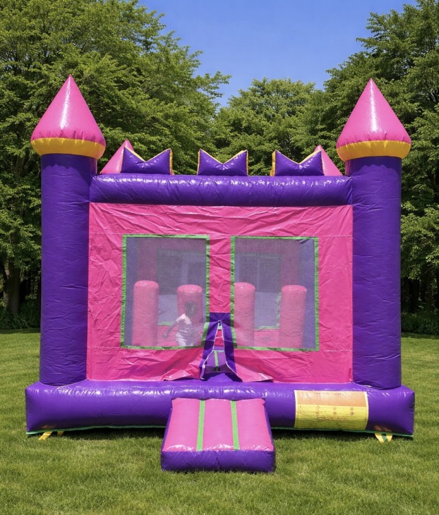 A charming, compact inflatable castle designed to bring a touch of fairy-tale magic to small parties and backyard gatherings. This mini bounce house features classic castle accents—turrets and soft, rounded walls—that create an inviting, enclosed play space where younger children can safely jump, bounce, and imagine royal adventures. Its smaller footprint makes it ideal for tight lawns, patios, or indoor setups with adequate ceiling height, while still providing lively entertainment for birthday parties, family events, or themed celebrations. Lightweight and easy to position, the Mini Princess Castle offers a delightful, age-appropriate option when you want the look and fun of a castle without requiring a large setup area.