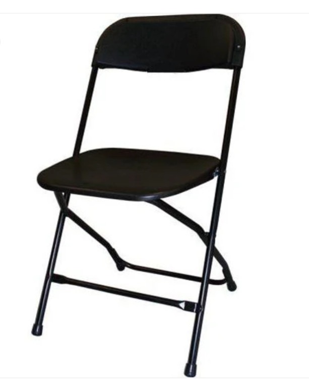 A classic black folding chair: simple, sturdy seating that’s easy to set up, move, and store. Lightweight yet durable, it’s a practical choice for events where quick seating solutions are needed—everything from formal dinners and presentations to casual backyard gatherings. The folding design lets you stack and transport multiple chairs with minimal space required, and the neutral black finish blends with any décor. Ideal for both indoor and outdoor use on flat surfaces; perfect when you need reliable, no-fuss seating for guests.
