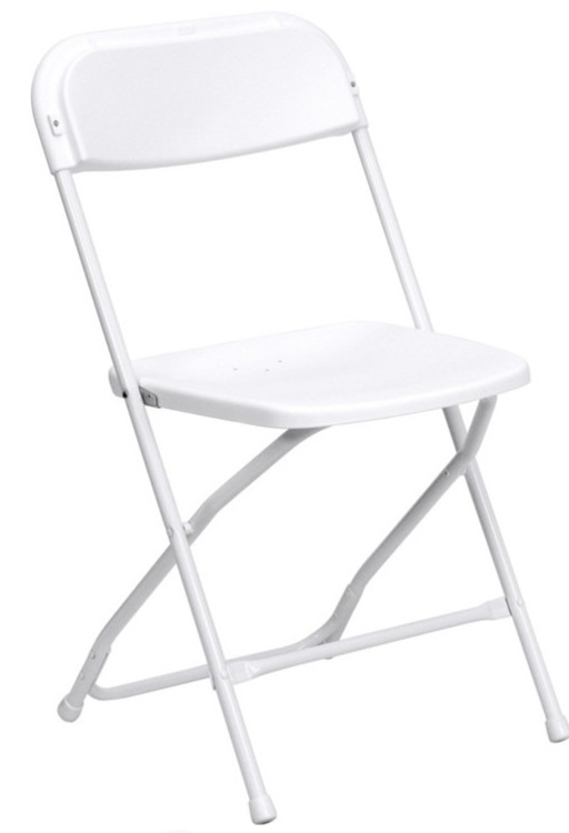 Simple, sturdy white folding chair ideal for events of all kinds. Lightweight and easy to set up, it folds flat for compact storage and efficient transport. The clean white finish gives a neat, versatile look that complements weddings, parties, meetings, and outdoor gatherings. Durable enough for repeated use, it provides dependable seating for guests while keeping a low profile so attention stays on your décor and festivities.